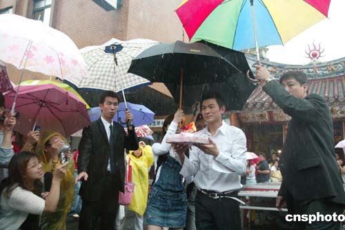 原來每次華仔到臺灣宣傳唱片時(shí),都會遇上大風(fēng)雨,華仔說:“水為財(cái)嘛,每次我宣傳下雨,唱片都會賣得好好,這次都希望過百萬啦。只有三年前我打官司不能出唱片時(shí),那次就是唯一一次沒下雨!