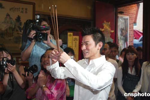 中新網(wǎng)8月5日電 據(jù)香港媒體報(bào)道,劉德華的國語大碟《再說一次我愛你》昨日全球發(fā)行,他專誠到臺北月老廟拜神,更為歌迷求了過千條月老紅線,打算于簽名會時(shí)送給fans。