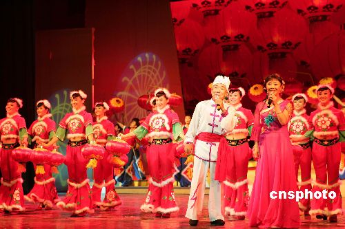 八月六日晚,山西太原舉行紀念中國人民抗日戰(zhàn)爭暨世界反法西斯戰(zhàn)爭勝利六十周年山西民歌演唱會《在太行山上》。來自山西省內(nèi)各地的藝術家及民間歌手會聚一堂,用山西人最熟悉的音樂一路牽引人民的思緒,重回六十年前的那段光輝歲月。圖為民歌《掛紅燈》。作者:張云