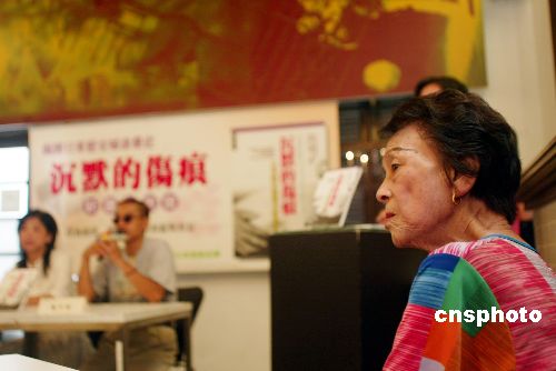 八月八日,在抗日戰(zhàn)爭勝利六十周年前夕,臺灣第一本日軍慰安婦歷史影像書《沉默的傷痕》在臺北舉行新書發(fā)布儀式,希望藉由本書還原二戰(zhàn)中有關(guān)慰安婦的真實歷史。圖為一名慰安婦在發(fā)布會現(xiàn)場。作者:盛佳鵬