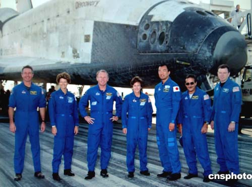 中新社北京八月九日電 北京時間八月九日二十點(diǎn)十二分,美國發(fā)現(xiàn)號航天飛機(jī)在經(jīng)過十四天太空之旅后成功降落在愛德華茲空軍基地。