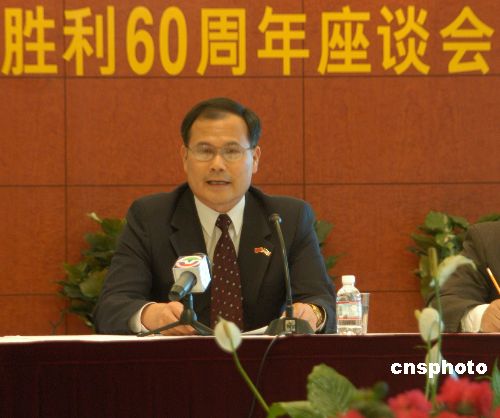 中國駐紐約總領館九日舉行座談會,紀念抗日戰(zhàn)爭暨世界反法西斯戰(zhàn)爭勝利六十周年,總領事劉碧偉發(fā)表講話。作者:譚宏偉