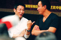 中新網(wǎng)8月11日電 北京晨報(bào)報(bào)道,40集大型歷史劇《臥薪嘗膽》昨日舉行了新聞發(fā)布會(huì)。兩大影帝陳道明、胡軍繼《一江春水向東流》之后再度攜手,一個(gè)扮勾踐,一個(gè)演夫差,將為觀眾再現(xiàn)驚心動(dòng)魄的“吳越之爭(zhēng)”。而陳道明、胡軍兩人在現(xiàn)場(chǎng)配合默契,一唱一和,上演了一出影帝版“二人轉(zhuǎn)”。