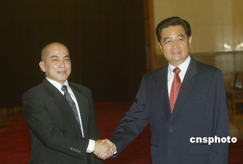 圖:胡錦濤會見柬埔寨國王西哈莫尼