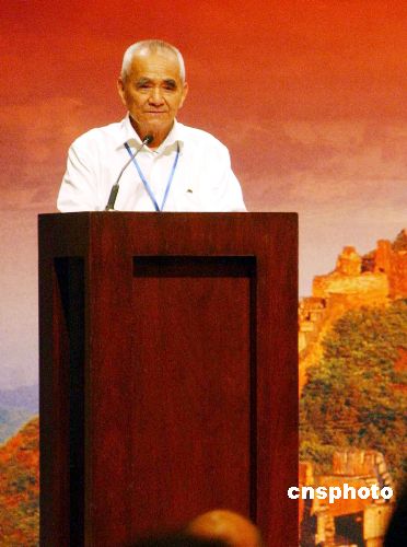 | 8月11日,紀(jì)念中國(guó)抗日戰(zhàn)爭(zhēng)暨世界反法西斯戰(zhàn)爭(zhēng)勝利六十周年午餐聚會(huì)在香港君悅酒店舉行,來自內(nèi)地和香港的數(shù)十位抗戰(zhàn)老戰(zhàn)士相聚一堂,出席紀(jì)念活動(dòng)。圖為81歲的燕秀峰上臺(tái)演講,秀峰老人是抗戰(zhàn)電影《小兵張嘎》的原型人物。作者:潭達(dá)明