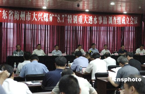 | 國務(wù)院廣東省梅州市大興煤礦“8·7”特別重大透水事故調(diào)查組成立會議十一日在興寧市舉行,中國國家安全生產(chǎn)監(jiān)督管理總局局長李毅中、監(jiān)察部部長李至倫擔(dān)任該調(diào)查組組長,廣東省省長黃華華、公安部副部長劉金國、中華全國總工會書記處書記張鳴起、廣東省副省長游寧豐等任副組長。作者:羅仰明