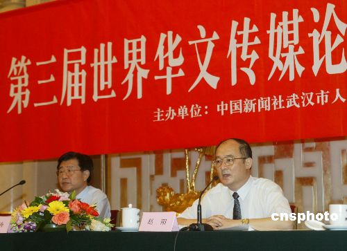 八月十二日,國務院僑辦副主任趙陽(右)、中共武漢市委副書記殷增濤(左)出席在北京人民大會堂舉行的“第三屆世界華文傳媒論壇”新聞發(fā)布會。由中國新聞社、武漢市人民政府主辦的“第三屆世界華文傳媒論壇”將于九月十一日在武漢市召開。作者:史利