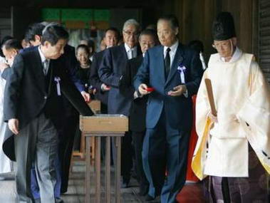 報(bào)道稱,日本政府相關(guān)人員中,厚生勞動(dòng)相尾辻秀久、自民黨出身的內(nèi)閣府副大臣七條明和防衛(wèi)廳副長官今津?qū)掃M(jìn)行了參拜。民主黨中,羽田雄一郎和田村秀昭兩名參議員進(jìn)行了參拜。