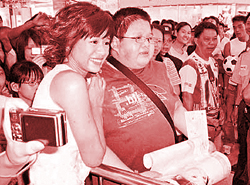 活動中,一名癡心男fans欲上前索取胡杏兒簽名,被保安阻止后,男fans顯得非常激動,竟嚎啕大哭起來,更凄厲高呼:“我要簽名呀!”之后更數(shù)度猛力將頭撞向商場店外的玻璃,幾乎當(dāng)場暈倒,在旁的保安屢勸亦無效,令場面一度混亂。