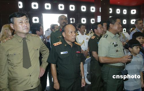 在這個(gè)中國(guó)人民抗日戰(zhàn)爭(zhēng)暨世界反法西斯戰(zhàn)爭(zhēng)勝利六十周年的日子里,坐落在盧溝橋畔宛平城內(nèi)的中國(guó)人民抗日戰(zhàn)爭(zhēng)紀(jì)念館莊嚴(yán)肅穆,參觀的人流穿梭不息。受中國(guó)國(guó)防部外事辦公室的邀請(qǐng)參觀展覽的外國(guó)駐華武官團(tuán)一行在熙熙攘攘的人群中尤為顯眼,他們仔細(xì)觀看一幅幅照片、一件件文物和一處處復(fù)原景觀,認(rèn)真聽(tīng)取講解人員的英語(yǔ)介紹。