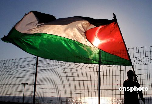 8月16日,一些巴勒斯坦人涌上街頭慶祝以色列從加沙地帶撤軍。圖為一青年揮舞著巴勒斯坦國旗。作者:Ic/cnsphoto