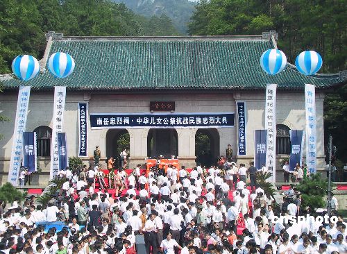 八月十八日,來(lái)自?xún)砂度氐目箲?zhàn)忠烈后裔和各界人士齊聚湖南南岳忠烈祠,參加于此間舉行的“中華兒女公祭抗戰(zhàn)民族忠烈大典”,共同緬懷、祭拜那些抗日戰(zhàn)爭(zhēng)中為國(guó)捐軀的民族忠烈,場(chǎng)面頗為壯觀。作者:劉雙雙