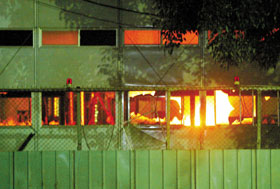 中新網(wǎng)8月22日電 高雄捷運(yùn)岡山北機(jī)場外勞21日晚發(fā)生暴動,他們縱火燒屋并攻擊消防人員及警察,阻止消防人員救火,情況近乎失控。