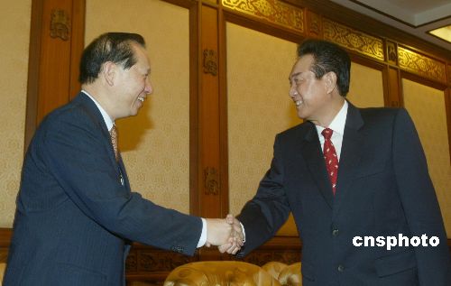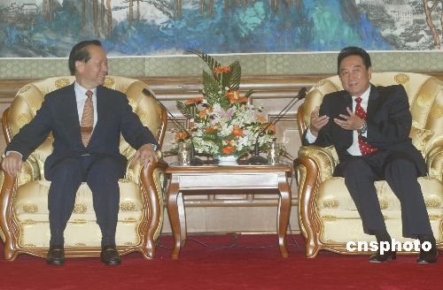 八月二十二日,中共中央臺辦主任陳云林在北京釣魚臺國賓館會見親民黨秘書長秦金生。作者:史利