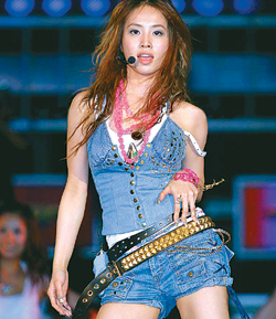 中新網(wǎng)8月22日電 據(jù)光華日報(bào)報(bào)道,蔡依林(Jolin)和徐若瑄(Vivian)兩位性感女神,前晚在臺灣舉行的《臺北流行音樂節(jié)》上來個(gè)正面交鋒斗性感,擔(dān)任壓軸演出的Jolin,專程花了10萬臺幣置裝,她穿上牛仔背心襯黑白短裙出現(xiàn),當(dāng)唱到高潮時(shí),Jolin更當(dāng)眾脫去短裙,原來她內(nèi)里穿了一條超短牛仔熱褲,再襯上高跟鞋勁歌熱舞一番,看得臺下觀眾熱血沸騰。至于Vivian則以黑色短裙出現(xiàn),露出一截小蠻腰,原本她亦襯上一對高鞋,但由于彩排時(shí)誤踩入舞臺的隙縫中,結(jié)果正式演出時(shí)Vivian只好改穿布鞋,鋒芒被Jolin搶走。