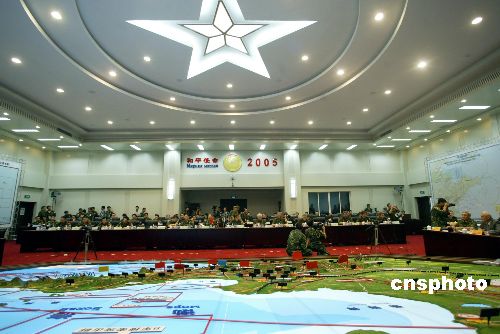 8月22日,中俄軍事演習(xí)指揮大廳正在進(jìn)行最后的戰(zhàn)役部署工作。23日將開始軍事演習(xí)第三階段——戰(zhàn)術(shù)實(shí)施階段的演習(xí)。圖為中俄聯(lián)合軍事演習(xí)指揮大廳的工作場(chǎng)景。作者:王麗南