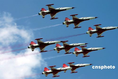 F1大獎賽土耳其站正式比賽結(jié)束21日晚。邁凱輪車隊(duì)的芬蘭車手雷克南一路領(lǐng)先,并率先完成比賽獲得首屆土耳其大獎賽的冠軍。法拉力車隊(duì)的七次世界冠軍舒馬赫因撞車推出了比賽。圖為開幕式上土耳其空軍表演隊(duì)列隊(duì)表演,為比賽助興。作者:Ic/cnsphoto