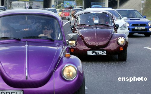 8月23日,一些大眾“甲殼蟲”汽車的愛好者開著他們收藏的甲殼蟲汽車列隊在俄羅斯首都莫斯科街頭行進(jìn),吸引了很多市民駐足觀看。作者:Ic/cnsphoto
