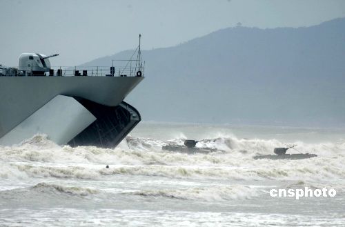 今天對參演的兩棲部隊來說,可不是個好日子。海上的風力6到7級,浪高2.5至3米,大雨。