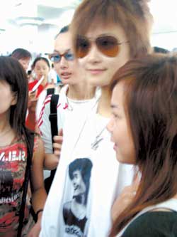 因?yàn)樵陂L(zhǎng)沙和李宇春同住一個(gè)酒店,記者看見(jiàn)前天晚上11點(diǎn)多還有人在李宇春住的“金牛座”門口守著,他們打算徹夜守在這里。昨天早上6點(diǎn)15分左右,記者退房途經(jīng)李宇春的“金牛座”,門口卻看不到一個(gè)人影,本以為“玉米”們都扛不住了,誰(shuí)知當(dāng)記者7點(diǎn)10分到達(dá)長(zhǎng)沙機(jī)場(chǎng)時(shí),看到十幾個(gè)穿著黃色衣服的“玉米”手捧鮮花和禮物已經(jīng)等在機(jī)場(chǎng)大廳了。