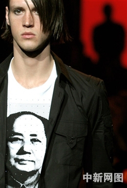 1月17日,在意大利米蘭舉行的2006/07秋冬男裝發(fā)布會(huì)上,一名模特在展示英國設(shè)計(jì)師John Richmond的作品。