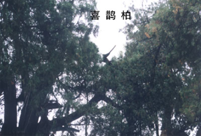 站在前殿前臺(tái)上,可看到西南方向與西戲樓緊靠的那棵古柏,古柏上部樹(shù)枝空間有一根干枝,干枝頂部象只喜鵲,頭朝南,尾巴朝北翹起,形態(tài)生動(dòng)逼真,因而為此柏取名為“喜鵲登枝柏”。