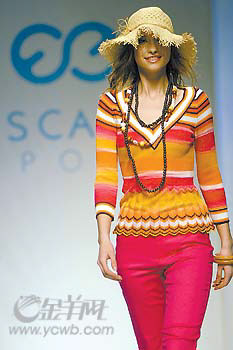 色彩繽紛的Kookai一向善玩多彩條紋,每季都會(huì)變幻不同花樣。今季可見更多橫紋與斜紋、縱紋的交錯(cuò),深V的領(lǐng)口設(shè)計(jì)彰顯女人味?v條紋與單色相拼接的小背心、蓬蓬裙,看上去休閑又俏皮,針織條紋背心則被用來(lái)與格仔襯衫搭配,帶出一股中性美。與之類似是ESCADASPORT,雖然用經(jīng)典黑白配來(lái)演繹水手條紋,卻將不同紋理分割羅列于同一件衣服上,甚至不惜在前襟開滿百合花的T恤背面玩起縱橫交錯(cuò)的游戲,陰柔和硬朗完美交接,顯得自由奔放。