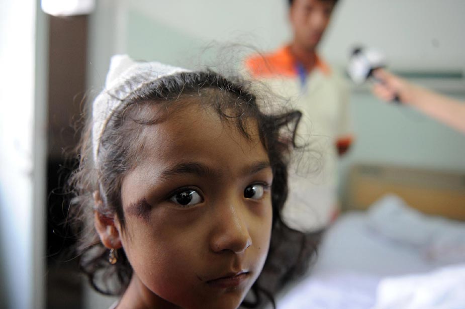 7月6日,一位名叫迪麗娜·瑪麗的少女在烏魯木齊友誼醫(yī)院接受治療,在5日晚發(fā)生的嚴重暴力犯罪事件中,她被暴力犯罪分子打傷。該事件已造成140人死亡,800多人受傷。中新社發(fā) 廖攀 攝
