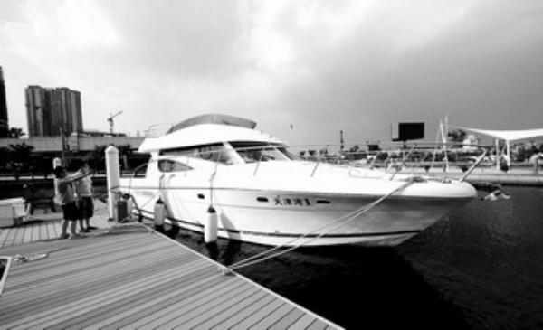 環(huán)渤海地區(qū)游艇業(yè)近年來迅速發(fā)展。天津市依托旅游業(yè),在濱海新區(qū)中心漁港休閑港灣區(qū)興建1000個(gè)游艇專屬泊位,進(jìn)一步加速游艇產(chǎn)業(yè)的發(fā)展。天津?yàn)、東麗湖等10多個(gè)港口、湖泊水域也都建立了游艇泊位及水上項(xiàng)目基地。圖為8月17日一艘游艇?吭谛陆ǔ傻奶鞛秤瓮Тa頭! ⌒氯A社記者 劉海峰攝