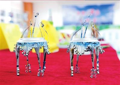前天,居民展示用易拉罐制作的裝飾品。近日,經(jīng)濟(jì)技術(shù)開發(fā)區(qū)居民原創(chuàng)低碳創(chuàng)意物品開始展出。承辦方大雄郁金香舍社區(qū)居委會(huì)工作人員介紹,此次活動(dòng)是經(jīng)濟(jì)技術(shù)開發(fā)區(qū)第5屆和諧社區(qū)文化節(jié)的一部分,希望通過(guò)此次活動(dòng)鼓勵(lì)居民們低碳生活,在生活中變廢為寶,發(fā)明環(huán)保小物品。