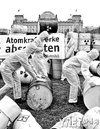 9月9日,在德國(guó)首都柏林,反核能示威者在德國(guó)國(guó)會(huì)大廈前抗議。 德國(guó)政府近日決定,推遲國(guó)內(nèi)核電站關(guān)閉時(shí)間,服役期最長(zhǎng)延長(zhǎng)14年。延長(zhǎng)運(yùn)行期間,核電企業(yè)需要繳納核燃料稅等并確保核電站能承受恐怖襲擊。民意調(diào)查顯示,大部分德國(guó)人贊成關(guān)閉核電站。環(huán)保組織批評(píng)默克爾順從于德國(guó)核能企業(yè)的游說。