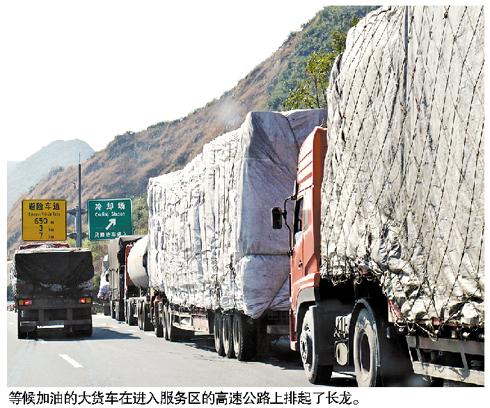記者昨日從韶關交警京珠北大隊獲悉,受近期柴油供應緊張影響,京港澳高速公路粵境北段各服務區(qū)連日來不約而同地出現(xiàn)了大貨車排長龍進服務區(qū)加油的現(xiàn)象,令許多車輛無法進服務區(qū)休息補給。