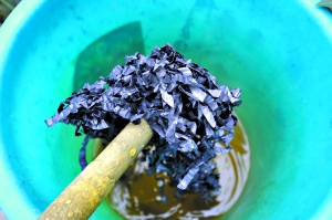 在靠山腳下的一排爐子前面,一個年輕小伙正在焚燒用黑塑料袋裝著的東西。看到記者上前,一位操有粵西口音、年齡在40歲上下的老板模樣的人湊上前來!澳氵@是煉金嗎?”“不是煉金,搞點電鍍廠的廢水!庇浾呖吹接幸粋盛有金黃色液體的玻璃器皿放在一個鐵盆上。在雨棚一側(cè),還堆有幾十個藍、黑色的塑料桶,桶口均用塑料袋堵住后,再用蓋子蓋上的。