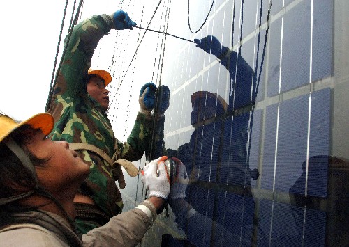 太陽(yáng)能方面,2009年中國(guó)光伏電池年產(chǎn)量約占全球產(chǎn)量的40%,連續(xù)三年居世界第一,為世界太陽(yáng)能光伏發(fā)電作出了重要貢獻(xiàn),通過(guò)國(guó)家能源局公開(kāi)招標(biāo)的甘肅敦煌10兆瓦光伏發(fā)電項(xiàng)目也正在建設(shè)之中。