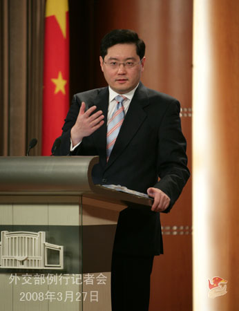 中新網(wǎng)3月27日電 據(jù)外交部網(wǎng)站消息,2008年3月27日下午,外交部發(fā)言人秦剛在例行記者會(huì)上答問(wèn)時(shí)否認(rèn)中國(guó)政府要派人去澳大利亞保護(hù)奧運(yùn)火炬?zhèn)鬟f。