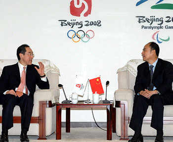 香港政務(wù)司司長(zhǎng)唐英年在北京與第29屆奧林匹克運(yùn)動(dòng)會(huì)組織委員會(huì)執(zhí)行副主席兼秘書(shū)長(zhǎng)王偉會(huì)面。(圖片來(lái)源:香港特區(qū)政府網(wǎng)站)
