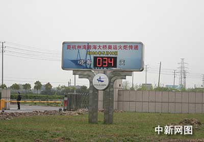 圖:杭州灣跨海大橋做好奧運(yùn)火炬?zhèn)鬟f最后準(zhǔn)備