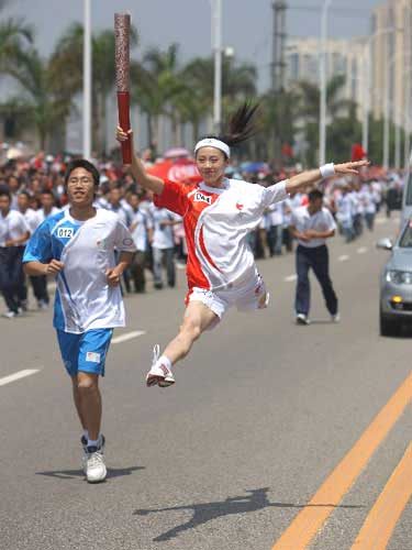 美女火炬手空中一躍 成福州圣火傳遞一大亮點