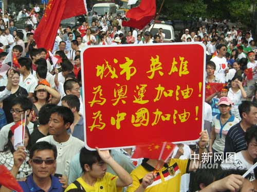 組圖:奧運(yùn)圣火在武漢傳遞 市民傾城迎接(3)