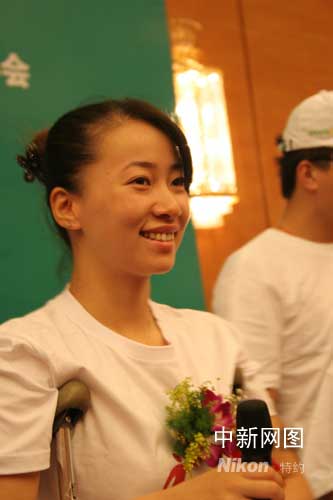 中新網(wǎng)北京七月十三日電 在北京申奧成功七周年、奧運倒計時26天之際,“我們的奧運——微笑中國2008全民健康志愿者行動”今天上午在北京人民大會堂正式啟動。作為該活動的健康形象大使,被譽為“中國最美麗火炬手”的殘疾人女火炬手金晶帶領(lǐng)志愿者代表們舉起右手宣誓:微笑面對世界,共同傳承奧運健康財富,讓中華民族的健康圣火永不熄滅。