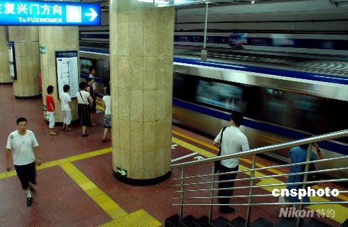 7月14日,一列地鐵駛?cè)氡本┑罔F阜成門站。據(jù)北京市交通委相關(guān)負(fù)責(zé)人介紹,北京地鐵運(yùn)營部門考慮到奧運(yùn)會(huì)開閉幕式結(jié)束時(shí)間較晚、客流量加大的實(shí)際情況,地鐵將采取24小時(shí)運(yùn)營。地鐵10號(hào)線一期、奧運(yùn)支線、機(jī)場(chǎng)線已完成工程建設(shè)和設(shè)備調(diào)試,即將開通試運(yùn)營。預(yù)計(jì)開通試運(yùn)營時(shí)間將定在7月20日之前,三條新線會(huì)在一天同時(shí)開通試運(yùn)營。中新社發(fā) 楊慧峰 攝