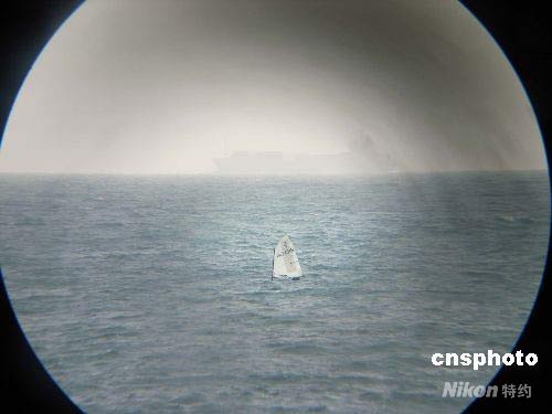 7月中旬,攝影者通過賽場(chǎng)里觀眾使用的望遠(yuǎn)鏡遠(yuǎn)眺青島奧帆賽場(chǎng)運(yùn)動(dòng)員訓(xùn)練。 中新社發(fā) 廖攀 攝
