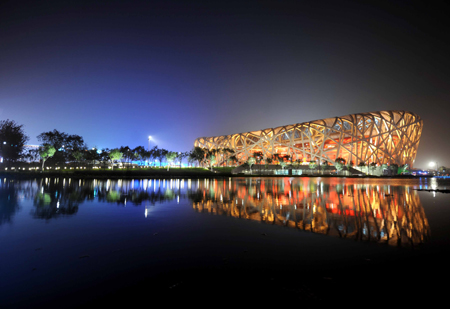 7月18日的臺灣《中國時報》這樣記錄了7月16日晚在“鳥巢”體育館進(jìn)行的北京奧運(yùn)會開幕式的第二次帶妝彩排場景。這場彩排首次公開了“鳥巢”夜景照明系統(tǒng)并燃放了禮花。