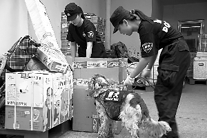 警犬對(duì)托運(yùn)物品二次安檢