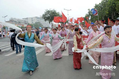 圖:濟(jì)南藏族學(xué)子載歌載舞歡迎奧運火炬
