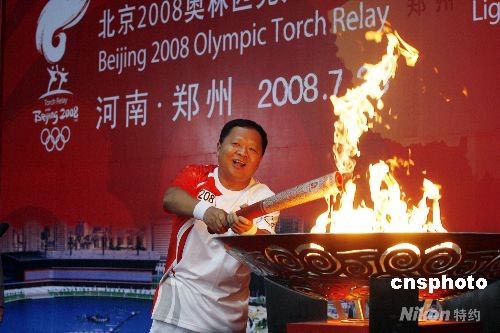 7月25日,中國工程院院士、中國信息與通信工程專家、解放軍信息工程大學(xué)校長鄔江興點(diǎn)燃圣火盆,奧運(yùn)火炬在鄭州的傳遞正式結(jié)束。 中新社發(fā) 慎重 攝