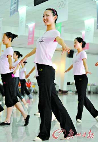 馬妮是這次強(qiáng)化培訓(xùn)的形體老師,也是我國三軍儀仗隊(duì)的形體教練。馬妮說,自己給她們打90分!霸谖覀儍芍艿男误w強(qiáng)化培訓(xùn)中,不僅有民族舞,還有古典舞和芭蕾舞。由于中國的東方人形體不同于歐美人,因此我們通過這些舞蹈來塑造出我們中國姑娘獨(dú)有的優(yōu)雅、含蓄,我經(jīng)常跟她們說的是,拉長美麗的頸,打開高貴的胸,伸展優(yōu)雅的手臂!
