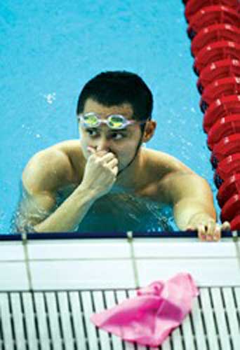 初入“水立方”的北島,神情怡然。下午6時30分,他先在游泳館西側(cè)的25米訓練池邊接受按摩師的按摩。一刻鐘后,北島起身,走向50米比賽池,看臺上攝影記者的相機響成一片。