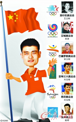 從中國(guó)代表團(tuán)參加奧運(yùn)會(huì)的歷史來(lái)看,旗手人選還是有一定的規(guī)律的。以夏季奧運(yùn)會(huì)為例,在已經(jīng)參加的5屆奧運(yùn)會(huì)上,中國(guó)代表團(tuán)的旗手無(wú)一例外全部來(lái)自中國(guó)男籃,比如1984年洛杉磯奧運(yùn)會(huì)的王立彬,1988年漢城奧運(yùn)會(huì)的宋濤,1992年巴塞羅那奧運(yùn)會(huì)的宋力剛,1996年亞特蘭大和2000年悉尼奧運(yùn)會(huì)的劉玉棟以及2004年雅典奧運(yùn)會(huì)的姚明。無(wú)一例外,旗手都是身高2米以上的“巨人”。