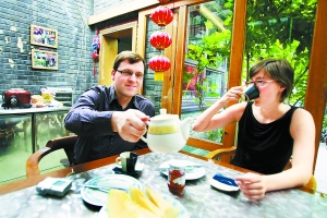 彼得與西蒙娜夫婦非常期待來中國旅游,來前,西蒙娜還特別到柏林大學里學習了10個月的中文。她告訴記者,不想住在賓館飯店的酒店里,千篇一律沒有特色,希望住在北京市民家里有家庭氣氛,還能體會不同國家人們的生活。“在這樣精致的四合院里吃著可口的早餐,抬起頭就是滿樹的石榴果,是我們喜歡的度假方式”。